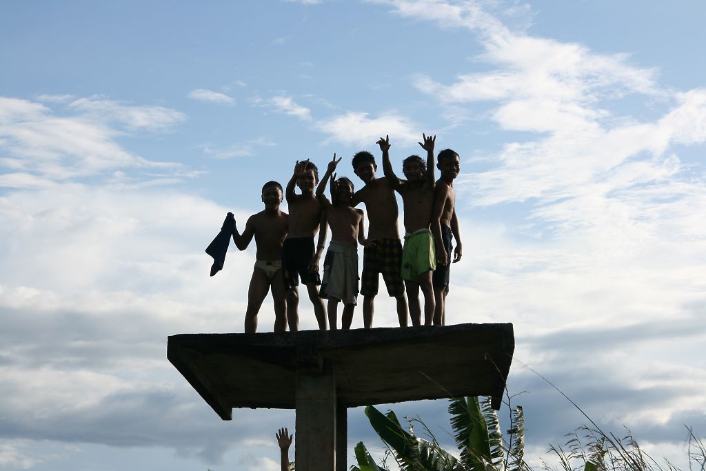 Jungen auf Badeturm