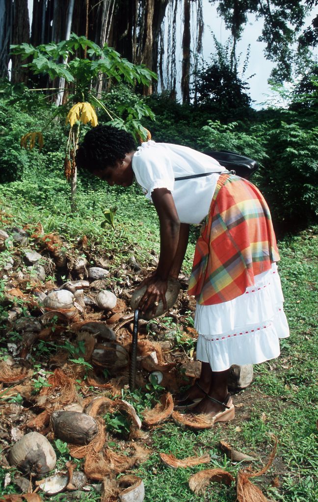 Öffnen einer Kokosnuss im Morne Coubaril Estate