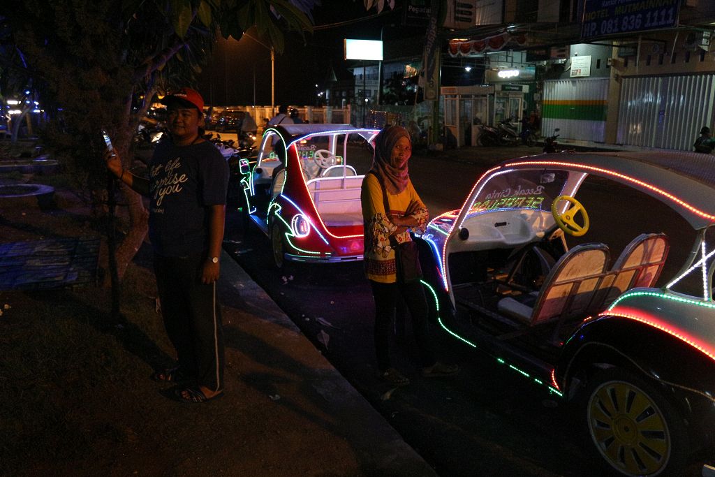 Neongefährt am Platz nahe Museum